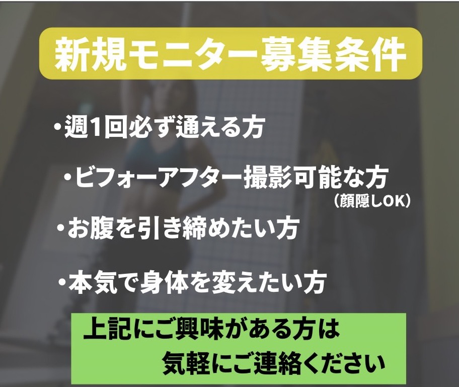 パーソナルトレーニングのダイエットモニターを募集します!